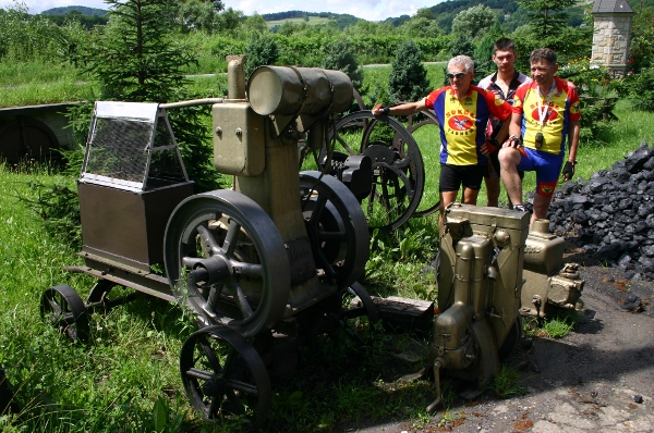 Dzień II - 65 km Na sobotę zaplanowaliśmy zwiedzanie Rabki Zdroju i skansenu taboru kolejowego w Chabówce i pomimo padającego od rana deszczu przystąpiliśmy do realizowania planu z żelazną konsekwencją. Kurtki z kapturami, ochraniacze na buty i w drogę. Nasza determinacja się opłaciła, bo koło południa przestało padać i do Jurkowa powróciliśmy w promieniach słońca. Ale nawet jazda przed południem w deszczu była ciekawym przeżyciem - było bardzo ciepło i bezwietrznie, a nagrzana ziemia zmoczona deszczem parowała spowijając góry porwanymi kłębami mgły, co tworzyło tajemniczy klimat wokół nas. W Rabce trafiliśmy na jakiś festyn, którego główną atrakcją były zawody w trialu rowerowym - to niesamowite co ci młodzi ludzie potrafią zrobić na swoich rowerach. Wielkie wrażenie wywarły na nas stare ciuchcie i wagony stojące w skansenie w Chabówce, przywodzące na myśl dawne filmy, a u starszych wspomnienia z dzieciństwa.